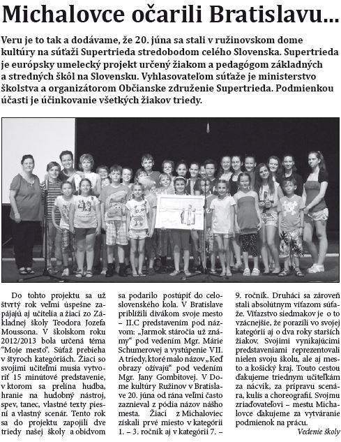 1. ZŠ MICHALOVCE na ul. T. J. Moussona - Brána poznania otvorená